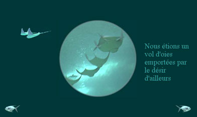 questionetudier le mouvement en photographie avec pour thème la vie sous-marine. solutions miben faisant une étude sur les poissons atlantiques. "traces de mouvements" est une expérience d'image fixe gardant la trace du passage d'un être. Avec textes méditatifs originaux. dates du projet1998 - 1999 | ![]() |