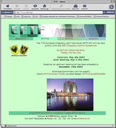 EFTF, European frequency and Time Forum, Neuchâtel, Site internet EFTF'01 et EFTF'02 | |