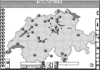 questionpeut-on éviter la consultation fastidieuse de l'horaire des CFF pour trouver la meilleure correspondance? solutions mibOui, en associant un algorithme de recherche des chemins les plus courts à une interface Hypercard sur Macintosh. Notre logiciel TakeTheTrain donne en quelques instants les meilleures liaisons ferroviaires entre 2 villes parmis les 32 villes principales de Suisse. Il permet également d'ajouter des localités et des horaires. dates du projet1989 - 1990 | ![]() |